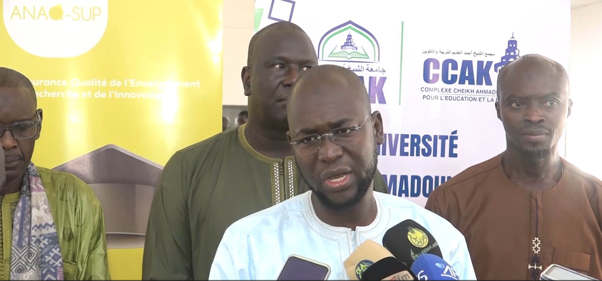 Professeur Massamba DIOUF, Secrétaire exécutif de l’Autorité nationale d’assurance – qualité de l’enseignement supérieur, de la recherche et de l’innovation (ANAQ-SUP), accompagné par le Directeur de l’enseignement supérieur privé du Sénégal, Professeur Benoit TINE, ont effectué une visite de travail, mercredi 16 juillet 2025, au Complexe Cheikh Ahmadoul Khadim pour l’éducation et la formation (CCAK-EF), avec les autorités des établissements d’enseignement supérieur privés de la région de Diourbel.